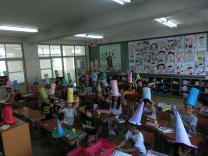 図工の学習で,「ぼうし」をつくりました。