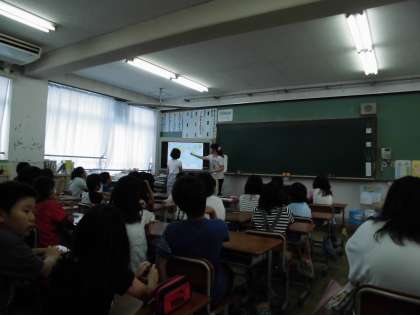 総合で「外国のことをもっと知ろう」という勉強をしました。日本語教室の劉先生が教室に来て,お話してくださいました。初めは,世界地図を見て,中国やナイジェリア,日本などの場所を確認しました。そのあと,中国の文化と食事について学びました。日本の文化とは違うところがたくさんあり,驚いている子がたくさんいました。日本とは違う文化を学ぶことはとても大切なことだと思います。日本以外の国にも目を向けて,理解を深めていってほしいなと思います。