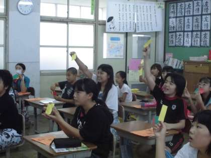 食事の栄養バランスについて考えました。給食に含まれる食品を,3つのグループ(赤・黄・緑)に分けました。どの食品が体の中でどのような働きをするのか考えながら分類しました。分類した結果,どのグループからも偏りなく多くの食品を選ぶと栄養のバランスがよい食事になることが理解できました。
