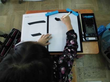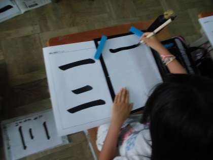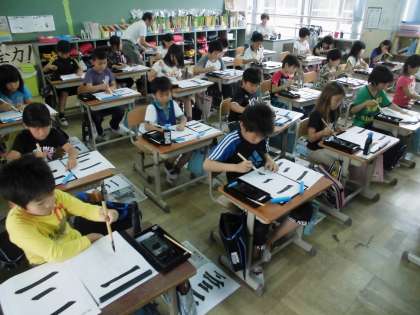 普段の学習の時と違い,字を書くことに全神経を集中させてゆっくりと丁寧に筆を進めていました。筆の毛先の感覚を感じながら真剣に取り組んでいました。