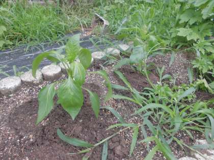 以前植えたゴーヤの苗が残念ながら枯れてしまったので,新たにピーマンの苗を植えました。次は,立派な野菜が収穫できるように,みんなで協力してお世話をしていきたいと思います。