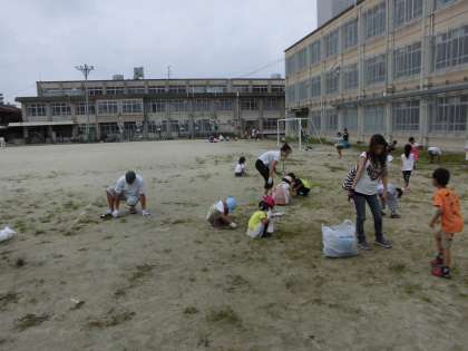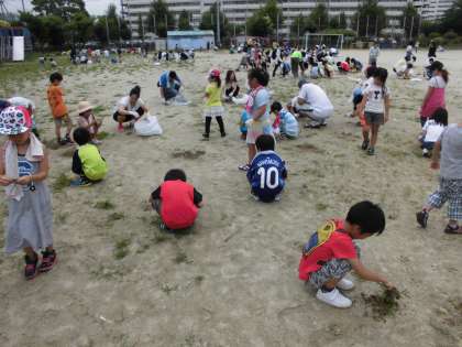 子どもたちは暑い中,両手いっぱいに抜いた草を持って,頑張ってくれていました!