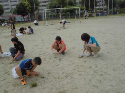 今日は,親子草引きがありました。運動会に向けてみんな一生懸命に草引きをしました。4組の子どもたちも,自分たちで草を引き抜く範囲を決めて一生懸命抜いていました。汗をかきながら,たくさんの草を引き抜きました。