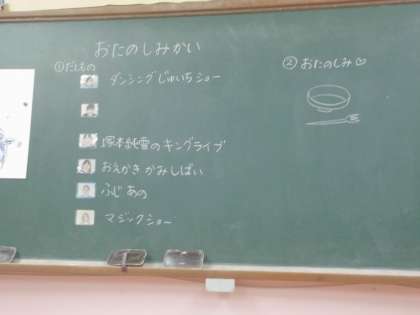 4組では,夏休み前と春休み前にお楽しみ会を開いています。一人ひとりがみんなの前で,一つ出し物をします。今日は,どんなことをするか決めました。今度から少しずつ準備をしていこうと思います。