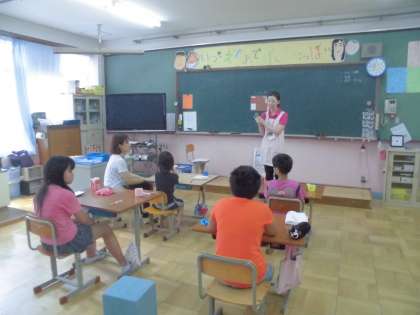 今日は,保健室の先生が4組に来て,歯磨き指導をしてくれました。