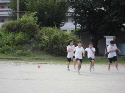 いよいよ夏休みです。駅伝練習も開始から2ヶ月経ちました。暑くなってきて,走るが大変しんどくなってきましたが,よく頑張っています。記録もだんだんよくなってきています。