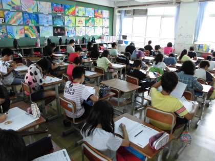 ジョイントプログラムとは,普段の学習をどれだけ理解することができているか確認するテストです。第一回目の確認テストは,国語と算数をしました。夏休みの宿題であった「おさらいプリント」で復習をしていると思います。どの子も一生懸命問題に取り組んでしました。