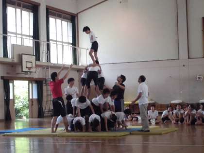 今日も2時間組体操の練習をしました。今日は男女ともに一番の大技のタワーをたてることができました。