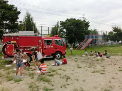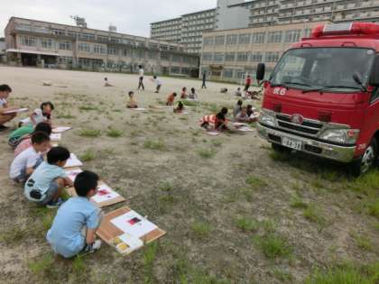 避難訓練が終わった後は,みんなで消防車をスケッチしました!