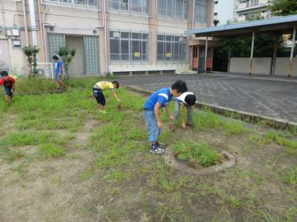 保護者の方と一緒に運動会での応援席や走る場所を中心に草引きをしました。