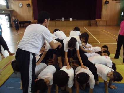 大技のタワーは,男子・女子ともに成功しました。だいぶ疲れもたまってきているようですがみんな頑張っています!