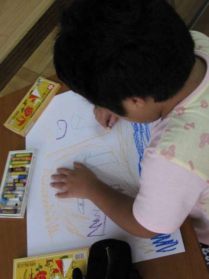 今日はみさきの家の写真を見ながら,一番心に残った場面を絵にしました。