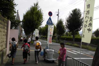 朝,登校時にしたじき委員会の児童が,大きな声であいさつをしています。