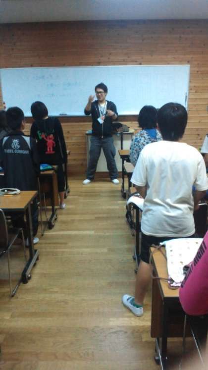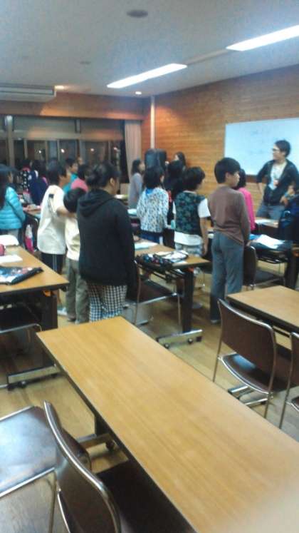 夜に予定していた天体観測が、雨のため中止になったので、キャンプファイヤーで歌う歌の練習をしました。