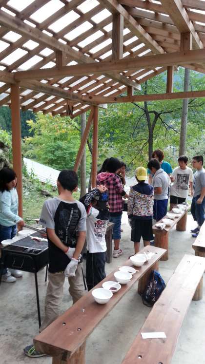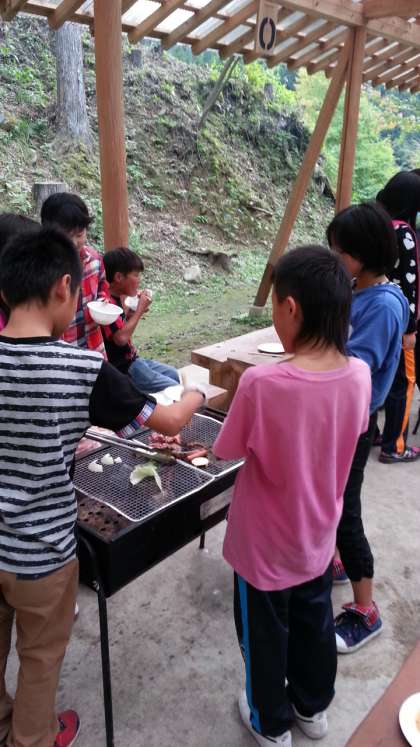 今日の夜ご飯はバーベキューです。班で協力して肉や野菜を焼いて食べました。おいしかったです。