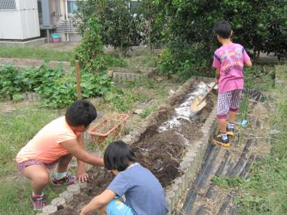 今日は冬野菜を植えるために4組の畑を整備しました。