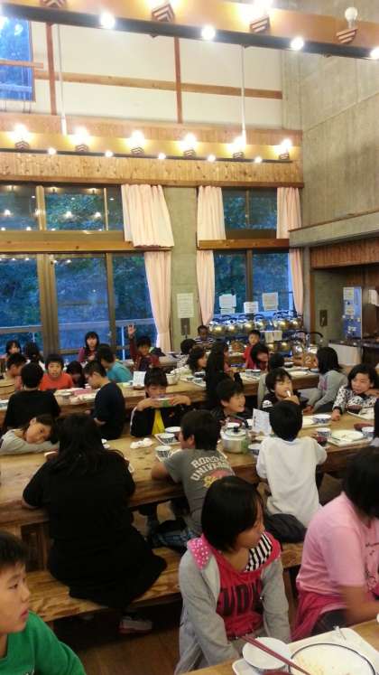 山の家に帰ってきました。少し休憩をして、夕食です。山の家で食べる最後の夕食でした。まだ帰りたくないと話しながらご飯を食べる姿も見られました。