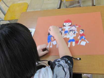 今日は図工の時間に運動会の写真を見ながら,自分の出た競技の絵を描きました。