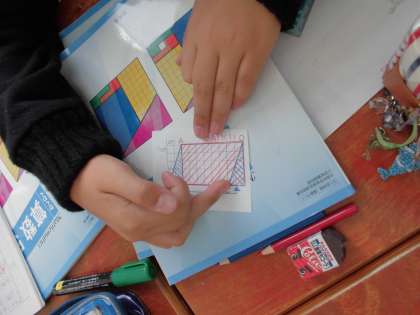 今日は平行四辺形の面積を求める方法を考えました。子どもたちは長方形の面積の求め方と三角形の面積の求め方を今までの学習で学んでいます。その2つの面積の公式を使って,問題を解く方法をしっかりと考えることができていました。