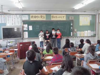 今日の4時間目は音楽の授業でした。言葉の抑揚を使って音楽を作りました。子どもたちは自分で作曲する難しさを感じたのではないかと思います。発表会ではグループで考えた音楽を発表しました。楽しんで発表していました。
