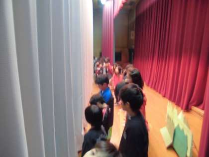 今日はリハーサルを行いました。これまでの練習をしっかりと生かし,一生懸命演じました。緊張から少しセリフが早くなってしまうこともありましたが,大きな声で保護者の皆様に届けられるように頑張っています。