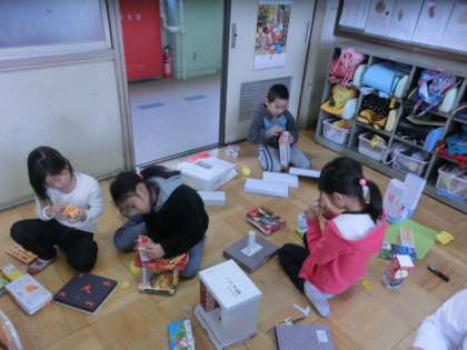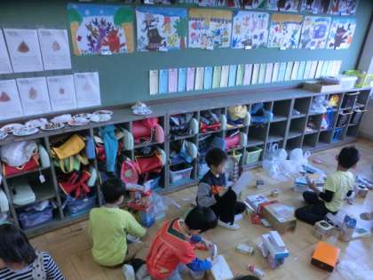 はこの形を見ながら,動物を作ったり家を作ったり,乗り物を作ったりと自由に表現しました!