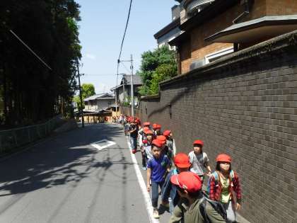 学校から観月橋駅まで隊列を組んで歩きました。