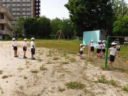 はじめは,なかなか思うように回ることが出来なかったのですが,同じチームの友だちとどうすれば回ることができるかを話し合いながら練習を進めていると,だんだんと回れる子どもが増えてきました。