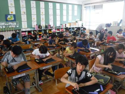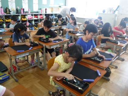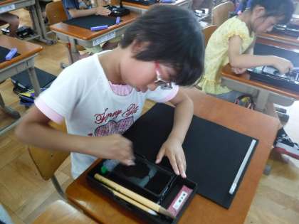 習字道具を使用しての学習に興味津々でした。墨液のつくり方や筆の使い方など2時間しっかり学習することができました。