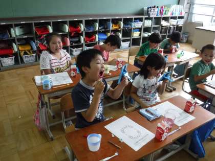 と,感想を口にしていました。そして,歯みがきの仕方を教わり,鏡を見ながら一生懸命磨くことができました。