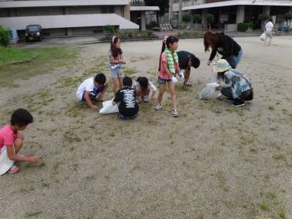 7月3日金曜日の自由参観日1時間目に親子草引きを行いました。