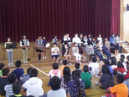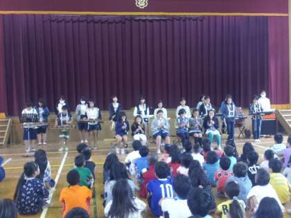 10月9日(金)終業式終了後に,全校児童の前で2曲演奏しました。