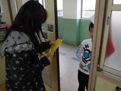 休み時間になると、6年生が、先生役になって、2年生の九九を聞いています。