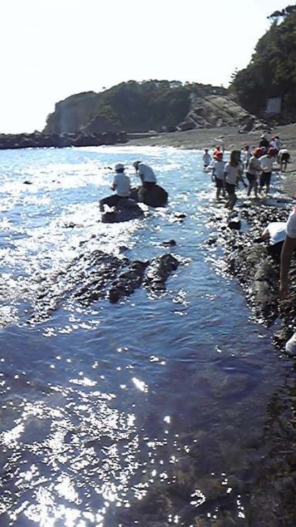 磯にいる生き物をみんなで探しています。