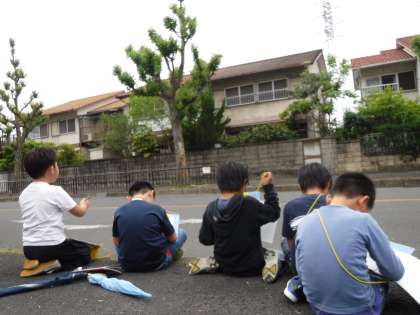 社会科の学習で校区探検に行きました。今回は,校区の北側の様子を調べました。「一軒家が多いね」「街路樹がたくさんあるよ」と見つけたものを,丁寧に記録することができました。また,歩きながら,「遠足の植物園は,今歩いているのとは反対の,南にあるね」と方角まで意識をして活動することができました。