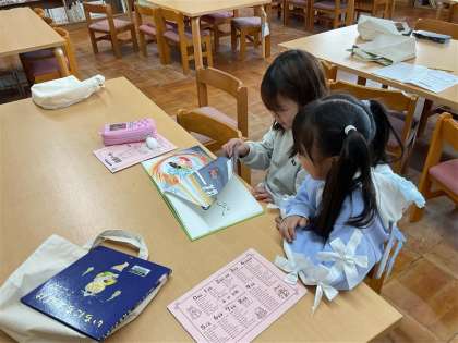 メディアセンターでは、友だちと仲良く本を読んで、楽しんでいます。