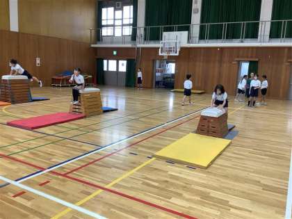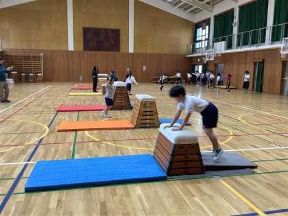 体育では「とび箱運動」の学習が始まりました。みんな意欲的に取り組んでいます。