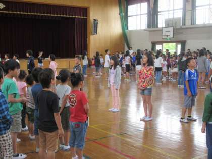 6月13日(火)10時から体育館で6月の児童集会を行いました。