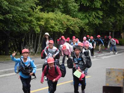 学校を出た5年生は,元気に山の家に到着しました!