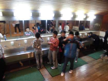 反省会を終え,いよいよ就寝準備です。1日目の活動,よく頑張りました!