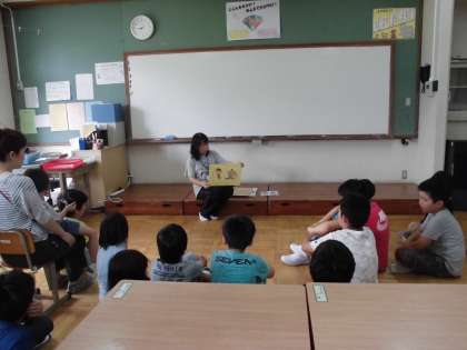 この日は4・5・6組と4年生・5年生・6年生で図書ボランティアの方の読み聞かせがありました。
