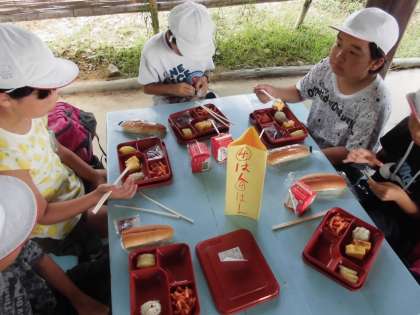 おはようございます。4年生は3日目の朝を迎えました。今日も朝から青空が広がり,とてもすがすがしいお天気です。3日間,すべていいお天気の中で活動ができました。昨夜のキャンプファイヤーのときも,夜空には無数の星も見ることができました。