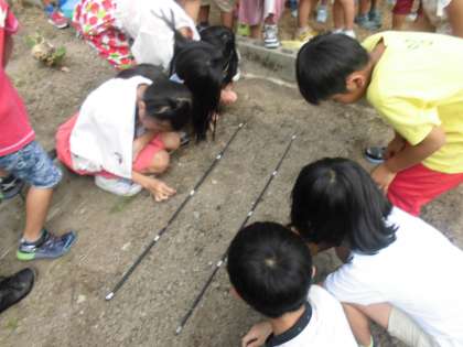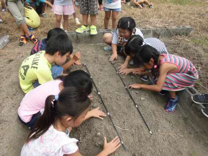 1人ずつ種をまき,学年全員分の大根が収穫できるように育てていきます!