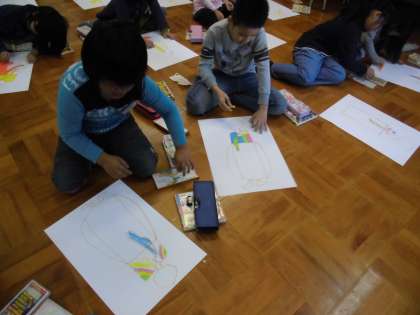 日本の着物との違いを感じながら,鮮やかな色使いで表現していました。