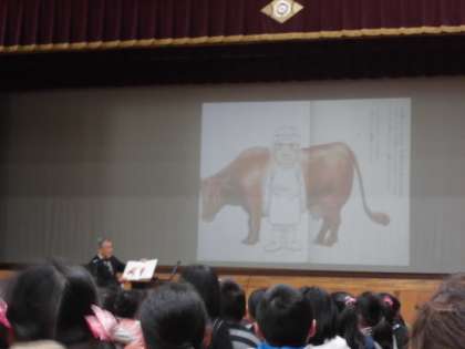 朝会で校長先生による絵本の読み聞かせがありました。