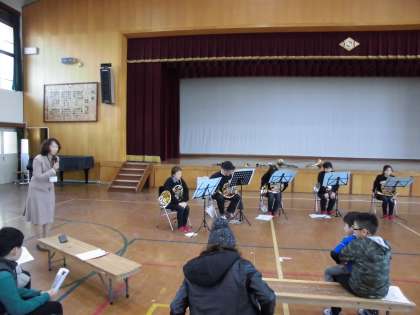1年生から6年生の音楽の教科書にのっている曲を演奏し,みんなもその演奏に合わせて歌いました。みんなも知っている曲ばかりなので,口ずさむことができました。