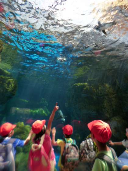 よい天気に恵まれ,1年生は京都水族館へ行ってきました。