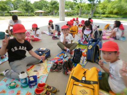 お昼ごはんは,イルカショーの前に,梅小路公園で食べました。