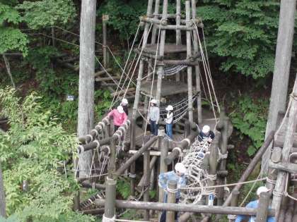 何とかお天気も曇空で、「冒険の森」でのアスレチックも行うことが出来ました。子どもたちは、歓声をあげて遊んでいました。