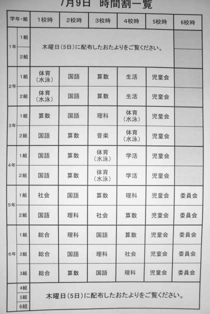 最後に,月曜日の時間割をお知らせします。もうすでに配布されている学年は,その通りに進めます。どうぞよろしくお願い致します。